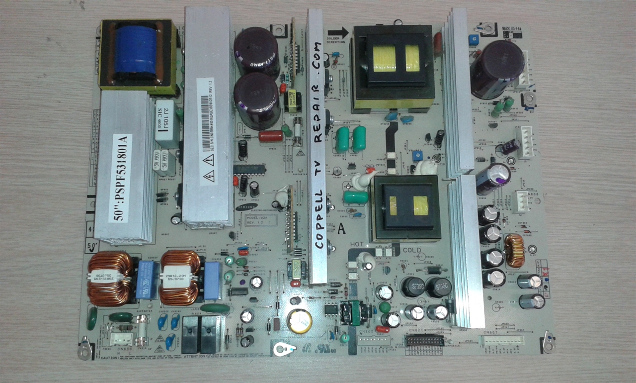 Coppell TV Repair LLC offers REPAIR SERVICE for power supply board Samsung BN44-00162A used in a number of 50'' plasma TVs such as Samsung HP-T5044, Samsung HP-T5054 and Samsung HP-T5064.